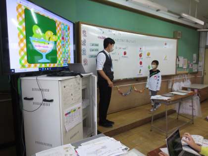 外国語の時間に,「お気に入りパフェ」を作りました。