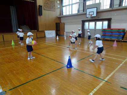 先週から体育の学習でころがしドッジに取り組んでいます。