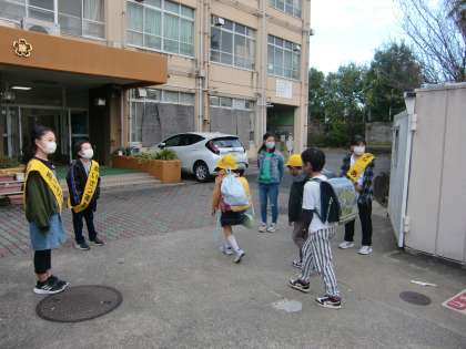 毎週月曜日と水曜日に計画委員会の子どもたちがあいさつ運動をしています。あいさつをきっかけに学校を元気にしたいという思いで活動しています。これから寒い日が続きますが,朝から学校を盛り上げていきたいと思います。