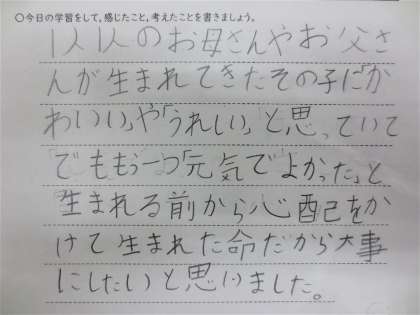 みんな一人ひとり愛されて,大切に思われて生まれてきたことがよく分かりました。
