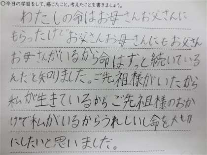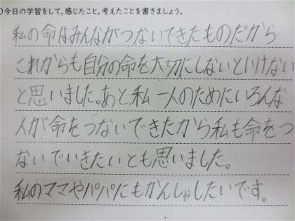 4年生では学活の時間に「つながる命」という学習をしました。