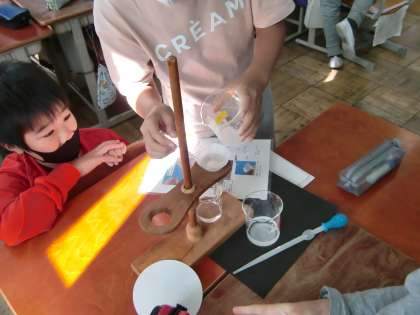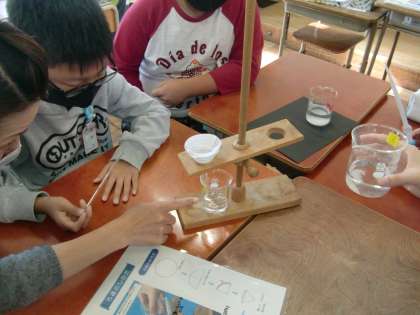 理科では塩や砂糖が水にどのように溶けるか学習しています。溶け残った水溶液をろ過するために,自分たちで実験装置の準備をし,ろ過する様子を観察しました。ろ過された水溶液を見て子どもたちは「これで飲めるのかな?」「もう塩は残ってないのかな?」と疑問をもっていました。次の時間もこの疑問を大切にしながら進めていきます。