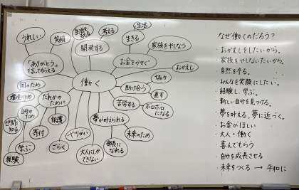 学習の導入として,働くって何だろう,夢って何だろうということについて考えました。