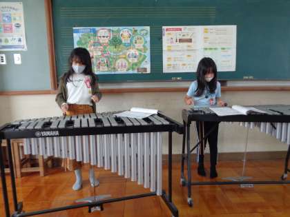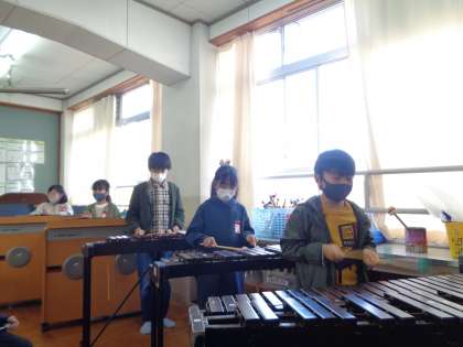 音楽科の学習で「茶色のこびん」を合奏しています。リコーダー・鍵盤ハーモニカ・鉄琴・木琴などのパートごとに分かれて練習した後,全体で合奏をしました。まだまだ完璧ではないですが,一生懸命取り組めました。