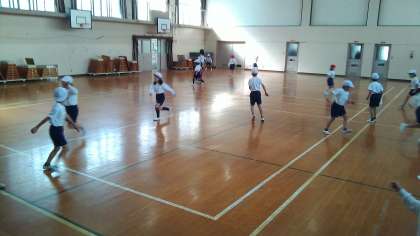 体育の学習で,「すもうあそび」や「おにあそび」に取り組んでいます。