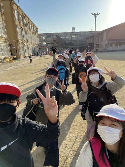 快晴に恵まれて学校を出発しました