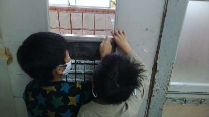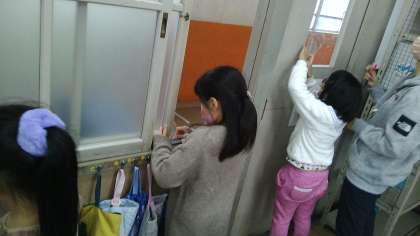 直角という言葉と意味を知り,教室の中に直角のところはないか探す活動をしました。三角定規をいろいろな場所に当てながら,「ここが直角だ!」「この部分がかどがまるくなっているから,直角ではないね。」と,友達といっしょに学びを深めていました。