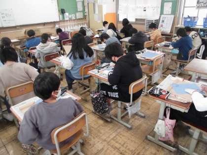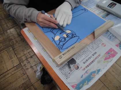 版画の学習が進んでいます。彫刻刀の正しい持ち方,姿勢,押さえる方の手の位置に気をつけながら,慎重に集中して取り組んでいました。体の動きや視線にこだわって下絵を描いています。それを大事に彫り進めていきます。