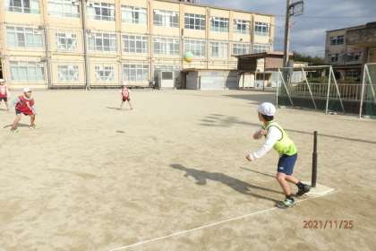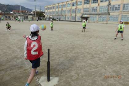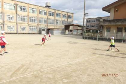 みんなとても楽しみにしているハンドベースボールです。今日はチームで作戦をじっくり立ててゲームをしました。前回試合をしたときの発見として,「ボールが守備の間をぬけてしまうと点数を取られるから,立ち位置を考えた方がいい。」ということを生かして声を掛け合いながら考えました。さらに今回の発見を次に生かしていきたいと思います。