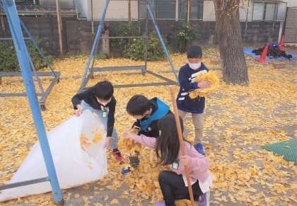 授業で学習したことわざをしゃべりながら,楽しくまじめに掃除しています。
