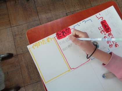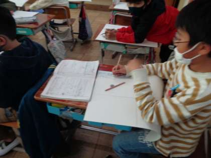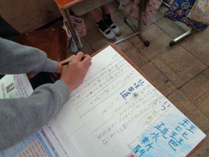 社会科で学習してきた「琵琶湖疏水」について新聞を作っています。「なぜ疏水をつくったのか」,「だれが計画をたてたのか」など自分なりに学習してわかったことをまとめていきました。見出しをつけたり,絵を入れたりしながら工夫する姿が見られました。