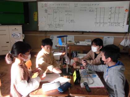 ふりこの動きの学習は,2回目の実験を行いました。ふりこが1往復する時間は,何によって変わるのか,考えました。クラスごとに確かめたい考えが違ったので,それぞれの条件で行いました。予想の理由の交流は,図を使って説明したり,身振り手振りでイメージしやすくしたり,伝わりやすいように工夫が増えてきています。また,時間を図ったり,往復する回数を数えたりすることも班で協力しながら活動できました。