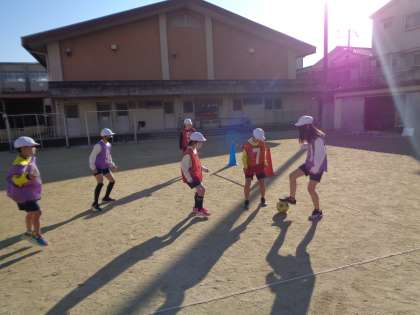 体育科で「サッカー」をしています。少しずつ相手を見て,パスをしたり,空いているところに動いたりすることができるようになってきました。今日初めて得点をとれた児童もたくさんいました。来週からは対抗戦をします。チームで作戦も考えながら取り組んでいきたいと思います。
