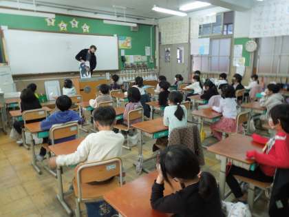 今日は,ALTのアンディ先生が教室に来て,自己紹介と読み聞かせをしてくださいました。