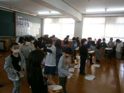 音楽の学習で音楽室へ行きました。2年生になって2回目の音楽室です。今回は「かぼちゃ」という曲に合わせて,グループになってリズム演奏をしました。教室で手拍子での練習もしていたので,子どもたちは楽しんで自分で選んだ楽器でリズム演奏をしていました。歌も楽器を鳴らすことも大好きな子どもたちです。
