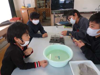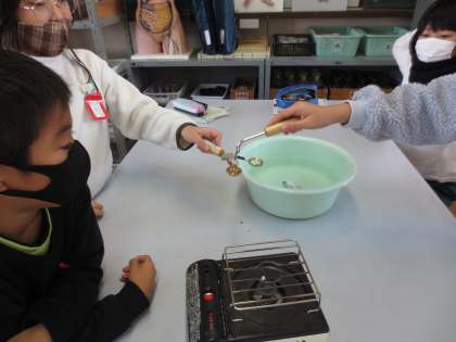 理科「ものの温度と体積」の学習で,金属を熱したり冷やしたりすると体積がどうなるかを調べました。