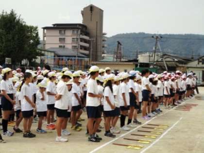 今日は,入場の練習や準備運動の練習,開会式,閉会式などの練習をしました。
