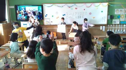 いよいよ当日。始まる前に,子どもたちが協力しながら,すてきな飾りで教室を明るくしてくれました。飾りを見つめながら,うきうきわくわくの子どもたち。