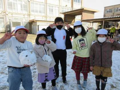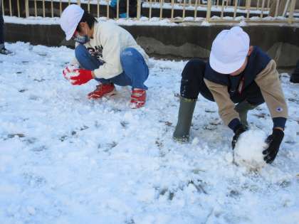 今日は朝から校庭に雪が積もっていました。休み時間は外に出て,大きな雪玉を作ったり,ふわふわの雪を触ったりして楽しみました。普段はできない雪遊びに子どもたちも大盛り上がりでした。