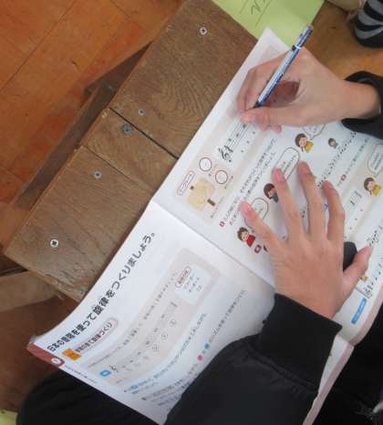 音楽の学習では,日本の音楽に使われる音階を使って,自分だけのオリジナル曲を作りました。作った曲は音符の長さや音の高さに注意しながら実際にオルガンを使って演奏します。初めてのことに戸惑いながらも,子どもたちは音楽づくりを楽しんでいる様子でした。