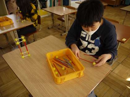 今日は,棒とボールを使って,直方体を作りました。