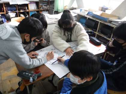 梅津まつりにむけての準備をしました。今年度は感染症予防のためたてわり集団で活動することができないので,6年生が遊びを考えて作成しました。アイデアを出し合い,どの学年の人も楽しめるように考えて作っていました。