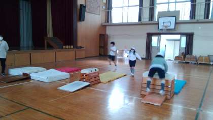 体育の学習で,「とびばこあそび」に取り組んでいます。