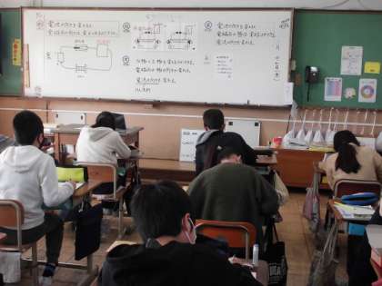 今日は,電池の向きを変えて,電流の向きと電磁石の極のでき方を詳しく調べました。方位磁針を使って,「S極を引きつけた」から,電磁石の極は「N極だね。」と,どちらの極か確かめました。電流の流れる向きを反対にすると,電磁石の極は反対になることがわかりました。