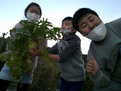 今回はなぜかほうれん草がほとんど育たなかったり,たくさん種をまいたはずなのに大きく育ったダイコンは3本だけだったりと思うようにはいかなかった栽培活動でした。