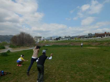 生活単元の学習で,桂川の河川敷に行きました。シロツメグサやタンポポ,チョウチョなど春の季節を感じるものを見つけました。その後は,だるまさんがころんだやおにごっこをして,しっかりと体も動かしました。帰りには搆口公園に寄り,ブランコなどの遊具でも少し遊びました。気温も暖かかったので,過ごしやすかったです。