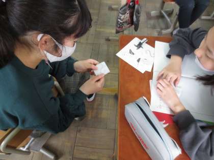 折り曲げて重なる形や,180度回転して重なる形などを確かめました。