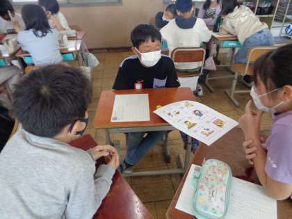 今年度の道徳の1時間目でした。今年度は,「おしゃべりゲーム」という学習からスタートしました。グループでお題について自分の思いを話したり,友達の話を聞きながら質問したりして楽しく活動しました。話すとき,聞くときにどんなことに気をつけたらよいかも考えることもできました。今回学んだことを様々な教科での話し合いの際に活かしてほしいと思います。