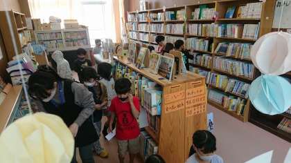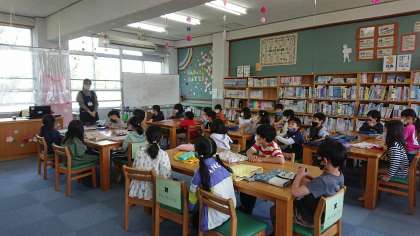 国語の「図書館へ行こう」の学習で本のもりへ2年生になってはじめて行きました。「なすの育て方が分かる本」「魚の名前が分かる本」などミッションの本を探しました。その後小野寺先生から,図書室では分類ごとに本が並んでいて,背表紙にラベルがあり,本の住所になっていることを教えてもらいました。これからも本のもりへ行って,たくさんの本と触れ合いたいと思います。