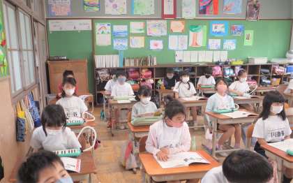 鍵盤ハーモニカは,クラスを二つのグループに分けて演奏しています。