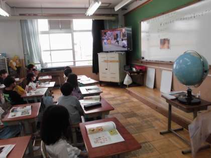 今日は,いろいろな国のおどりの音楽を見たり聴いたりしました。