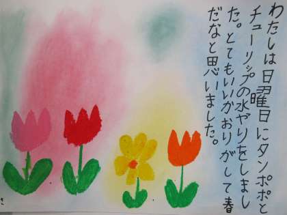 春を感じる言葉を集めて,春の様子を短い文や詩で書きました。