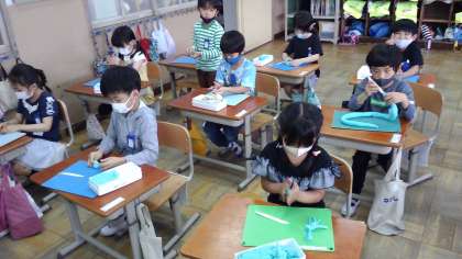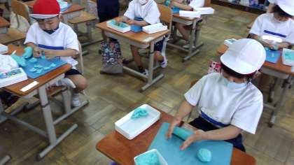 休み時間になると,ねんどで思いっきり楽しむ子どもたち。