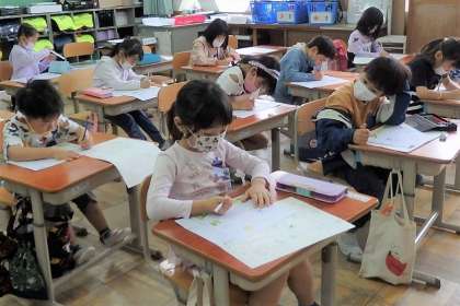 入学式からとっても頑張って過ごした1か月。椅子に座る時も小学生らしく「こしぴん」がサッとできるようになってきました。