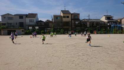 リレーあそびで運動場を駆けました