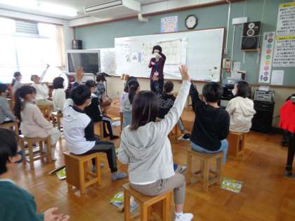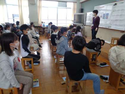 今年度よりスクールサポーターの先生と学習しています。今日は,「Believe」を二つのパートに分かれて歌う練習をしています。別のパートにつられないように頑張っています。今後さらに上手になるのが楽しみです。