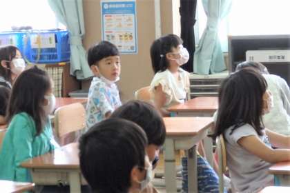 1年生の子どもたちも聞く姿勢を意識しながら頑張って聞きました。