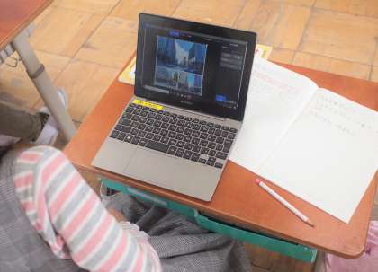 個人で調べた写真等をロイロノートで教師機に送信しています。
