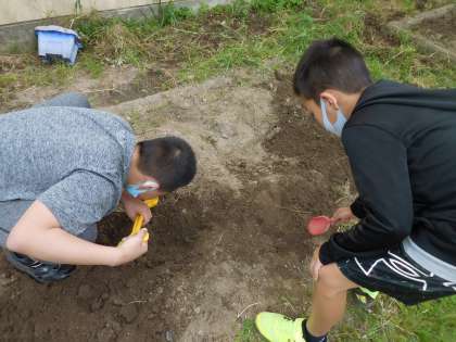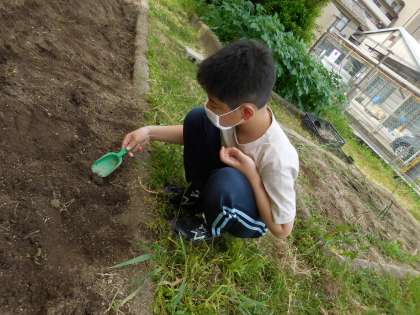 「何の幼虫かな。」「バッタがいたよ。」「アリの巣がある。」と大はしゃぎです。