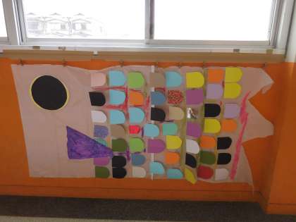 6人みんなで協力して,大きなこいのぼりを作りました。目を作る人,鱗を切る人,貼る人など分担を決めて取り組んでいました。「そろそろ,鱗が足りないから作るね。」と自分から気づいて動いてくれたり,「もう少し大きく切ろう。」など優しく教えてくれたりしました。
