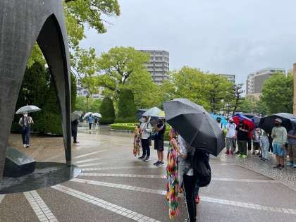 折り鶴を捧げ、平和を祈りました。