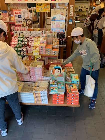 色々なお土産屋さんで、子どもたちは思い思いに買い物をしました。お家の人に何を買って帰ろうか悩みながら買い物を楽しんでいました。