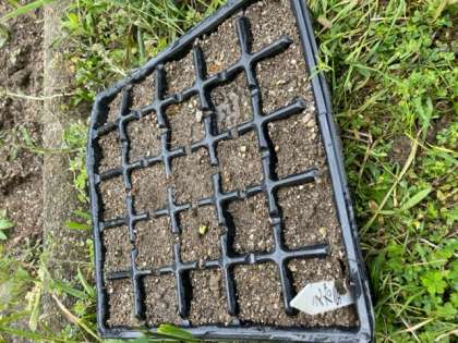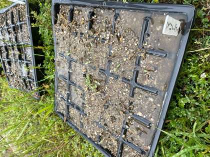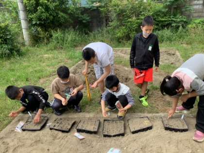 先週の水曜日に花(マリーゴールド・ヒマワリ・ホウセンカ)の種,えだ豆を育てるために大豆を育苗箱に植えました。その朝の会で水やり・観察をしに行くと,なんと芽が出ていました。
