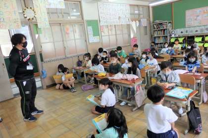 今週の校外学習では,1・2年生合同のグループで活動をする予定です。今日はぐんぐんタイムに1年生の教室に自己紹介をしに行きました。