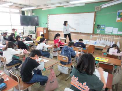 2時間目は避洪水警報が出た時の避難訓練でした。梅津小学校区は想定浸水深が1.4mにもなるということを知り,「高いところに避難しなあかんなあ。」と話していました。避難訓練中は,もし水に浸かっても,体が浮くようにランドセルを持ち,真剣に取り組む姿が見られました。