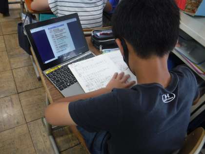 社会では高い土地のくらしについて学習しています。資料をタブレットに送り,それぞれが自分の使いたい資料を見ることができるようにしています。真剣な表情で調べていました。高い土地のくらしについてしっかり学んでいきたいと思います。